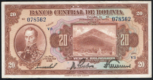 Bolivia 10 Pesos 1962 PCGS 63 PPQ Mismatched serial Numbers Error, AA069