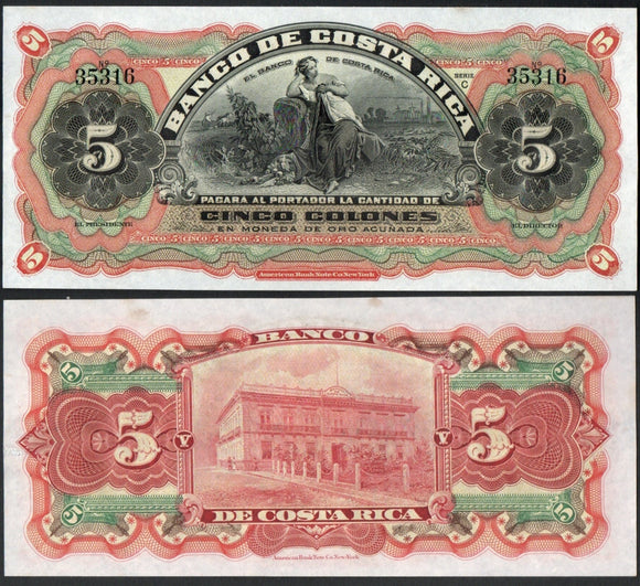 Costa Rica 5 Colones 1903-1917, P-S 122 Remainder, Unc