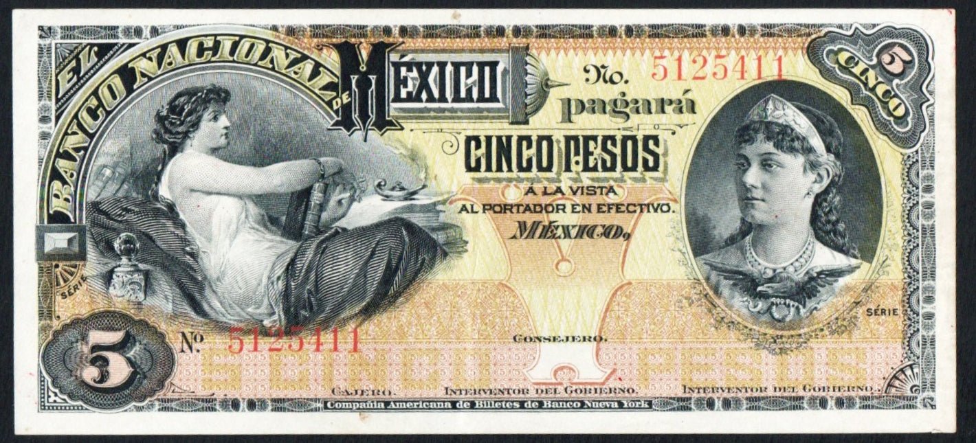 MEXICO 5 Pesos 1888-1913 Banco Nacional REMAINDER