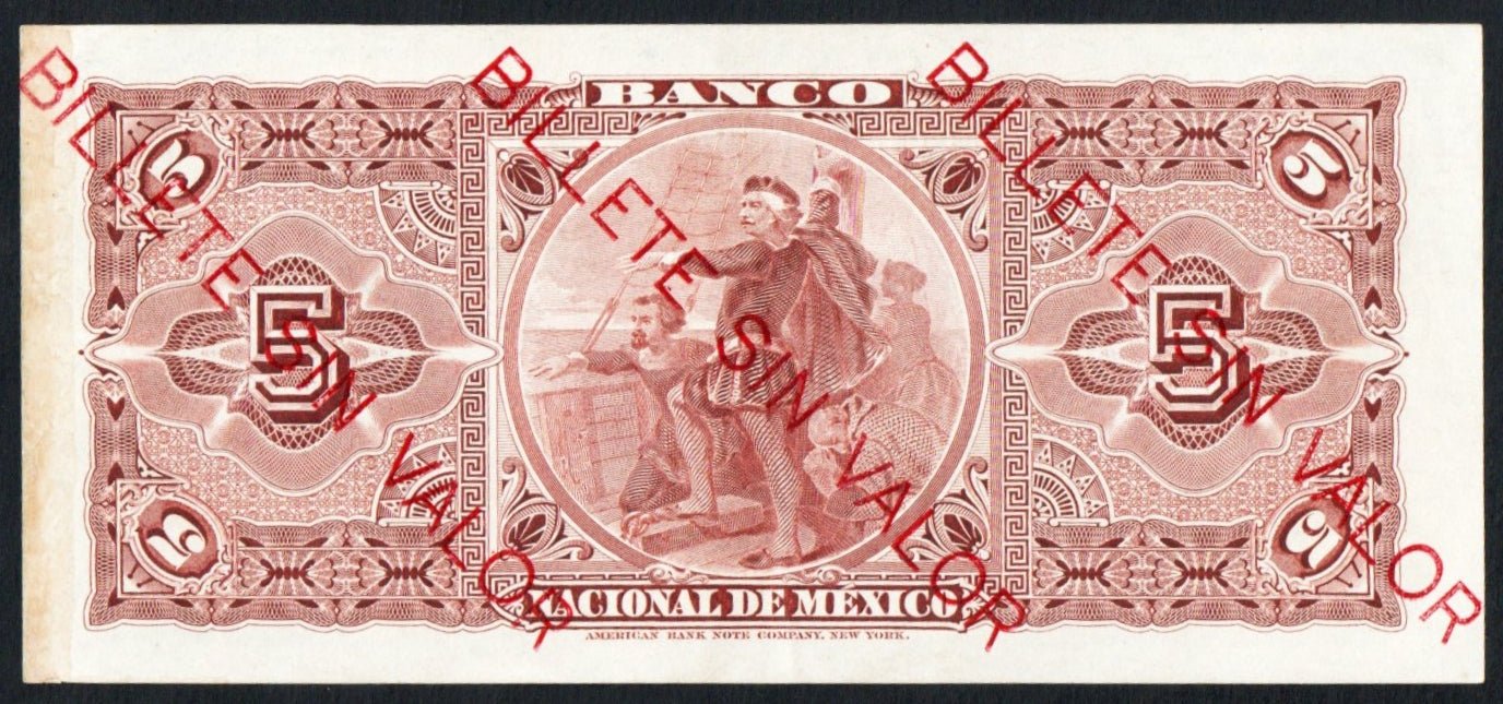 MEXICO 5 Pesos 1888-1913 Banco Nacional M-298r REMAINDER