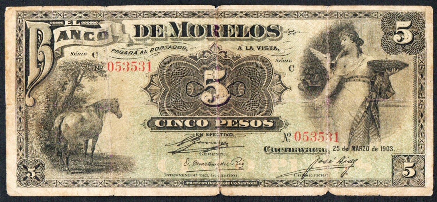 MEXICO 5 PESOS 1903 Banco de MORELOS M-417a