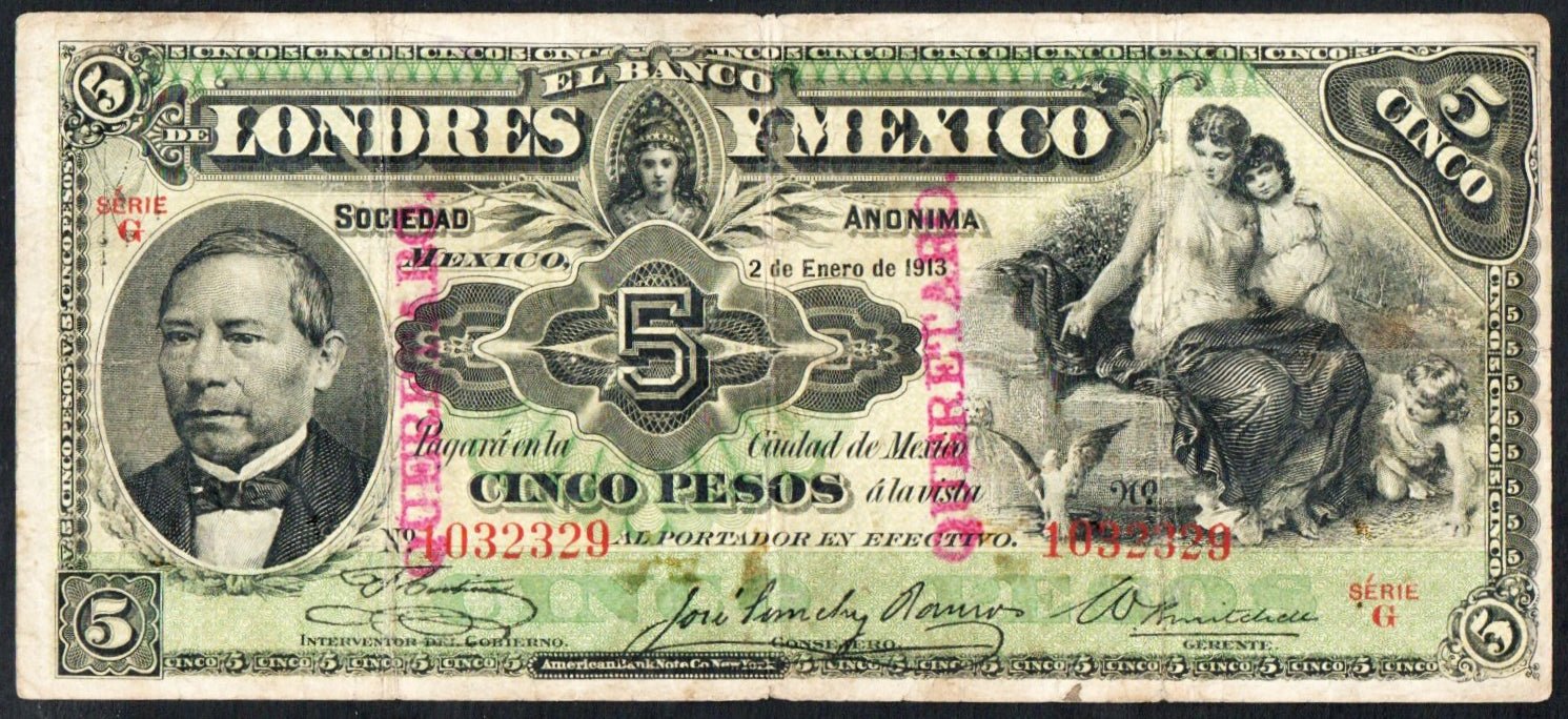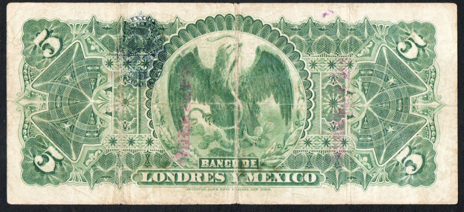 Mexico 5 Pesos 1913 Banco De LONDRES, QUERETARO