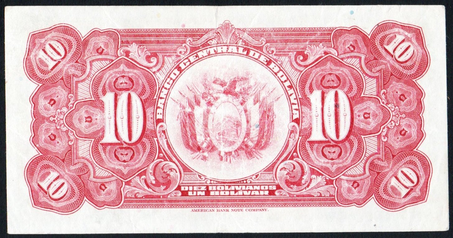 Bolivia 10 Pesos 1962 PCGS 63 PPQ Mismatched serial Numbers Error, AA069