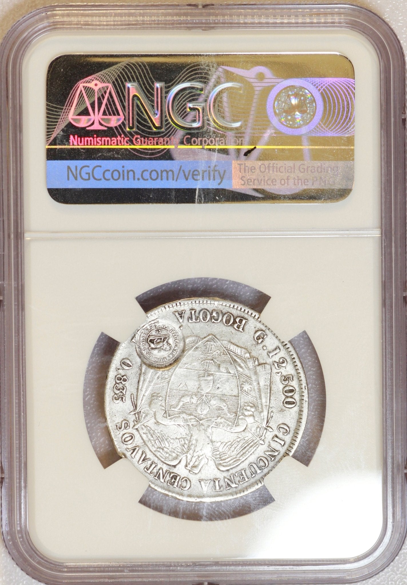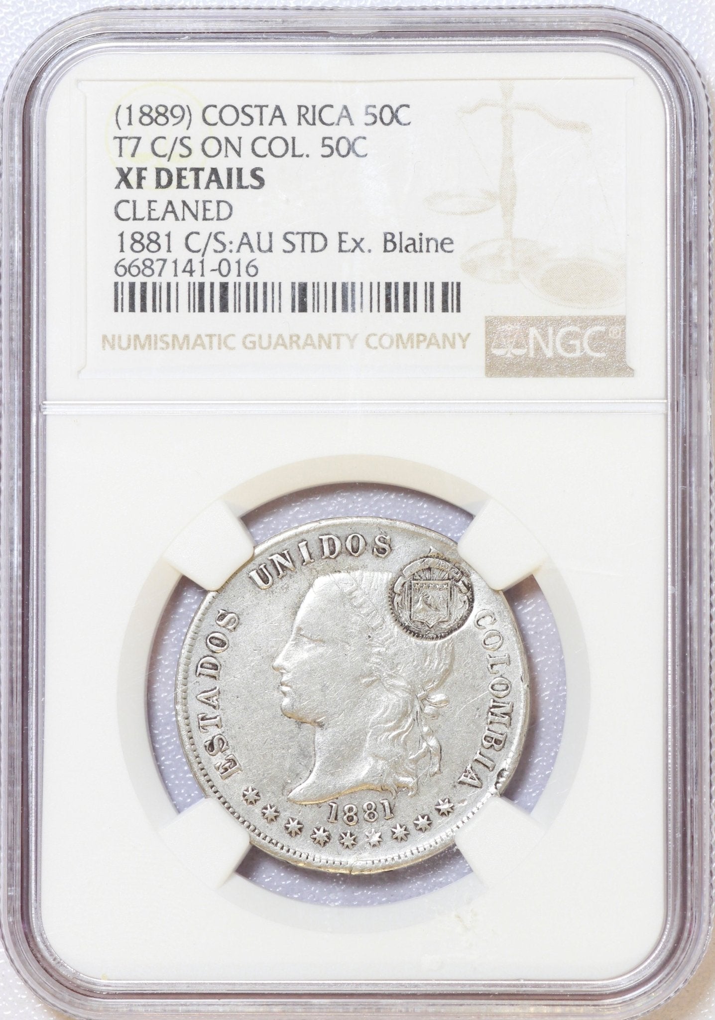 Costa Rica 50 Centavos (1889) C/S on Colombia NGC XF