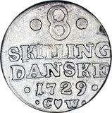 Denmark 8 Skilling 1729 CW KM-528 AA199
