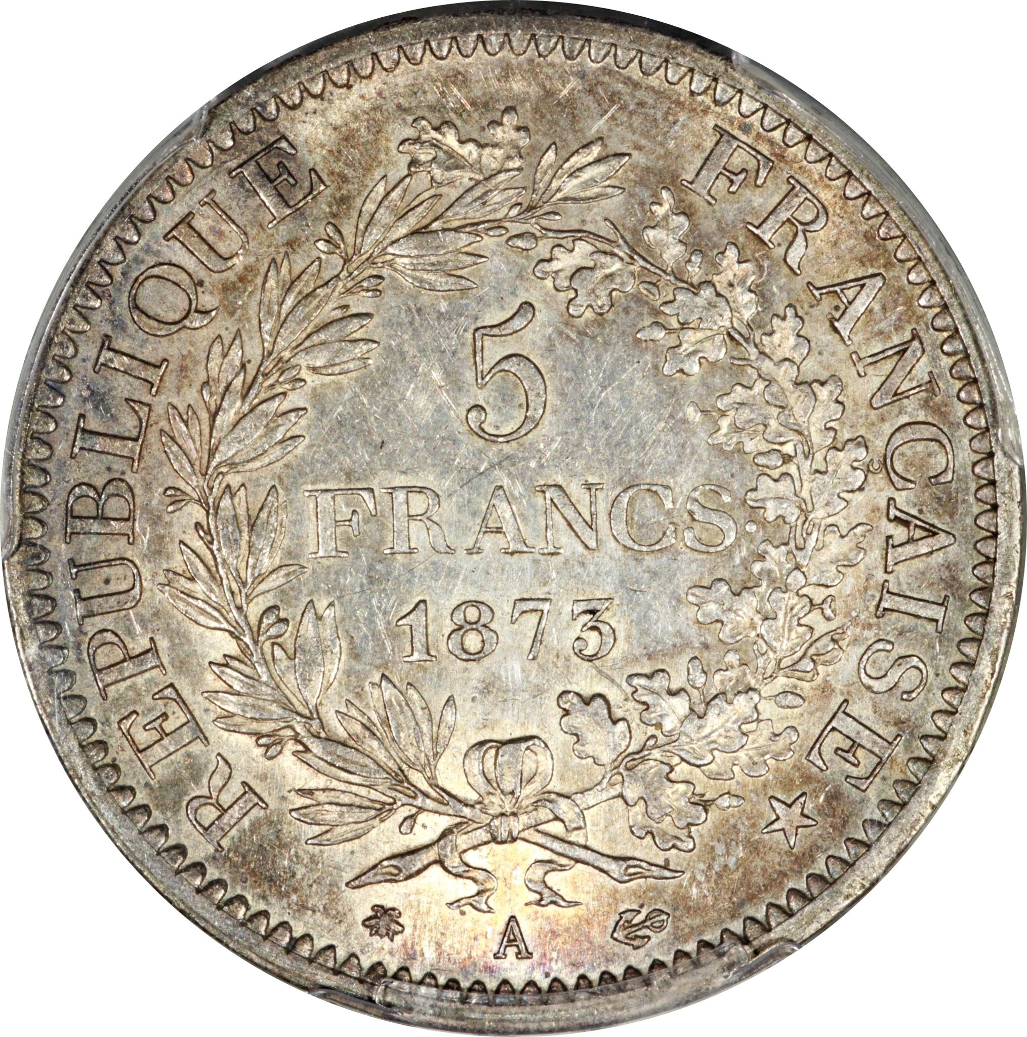 PCGS Certificate Verification Coin Details for Cert #58621535 - 1875-A France 5 Fr