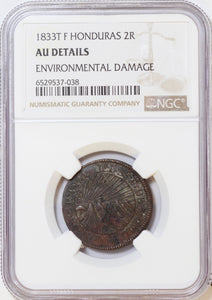 HONDURAS 2 Reales 1833 TF KM-19 NGC AU