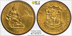 Philippines 5 Centavos 1966 KM-187 PCGS SP64